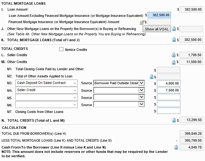 The Details of Transaction section in Encompass can be found after section 1400. Total Estimated Settlement Charges. It summarizes the purchase price, debts being paid off, fees, credits, total closing costs and shows whether the borrower needs to send money to close the transaction or if they’re getting money back.