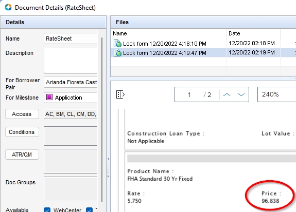 Line 802e Origination/Discount Point – This number will equal 100 minus the Price on the Rate Sheet (not applicable for Finally Home or Equity First)