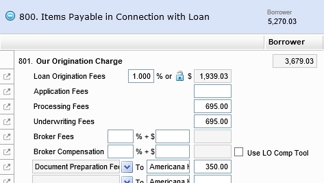 800. Items Payable in Connection with Loan - These should match the amount on the last LE: