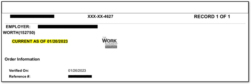 If using the Work Number, reference the “CURRENT AS OF” date not the Verified On date