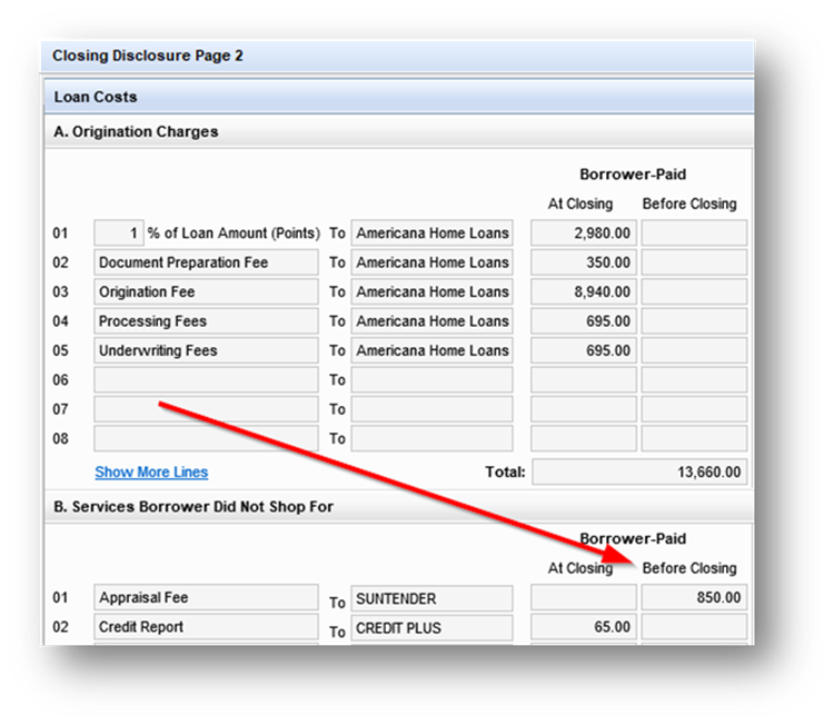 Fees should be marked paid “Before Closing” only if we have an Invoice showing the fee has already been paid