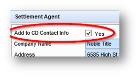 Settlement Agent should be completed with license numbers (if not, navigate to the File Contacts and click “Add to CD Contact Info”)