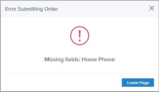 If any required fields for submitting an order are missing, an error popup will indicate to the user the missing field. The user will have to return to the loan and complete the missing field before attempting to submit the order again.