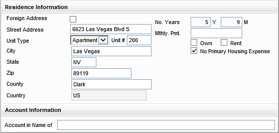 Fill out the residence information and account information sections. If the applicant pays rent at their current residence, make sure to include the monthly payment.