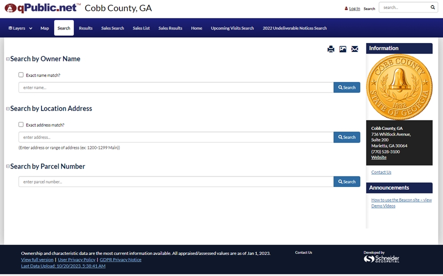 Once you have located the county’s Tax Assessors Office property directory, search for the subject property. On most county’s property directory, you can search for properties by:
