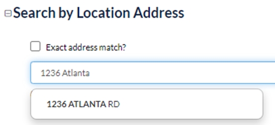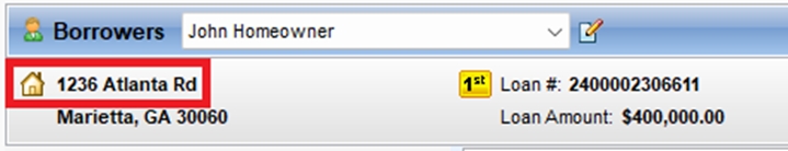 Street Address: (Recommended) Search by street and number. You can copy this from the Encompass loan information banner by double-clicking the address and pasting it (Ctrl + V) on the search field.