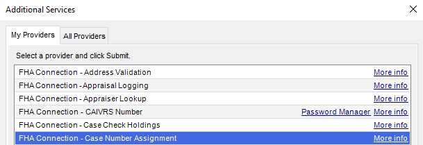 Select âFHA Connection â Case Number Assignmentâ and click Submit.