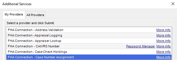 Select “FHA Connection – Case Number Assignment” and click Submit.
