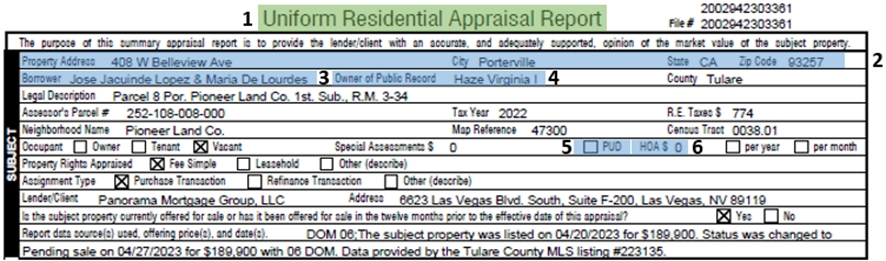 “Uniform Residential Appraisal Report” header for Single Family Residences (SFR)