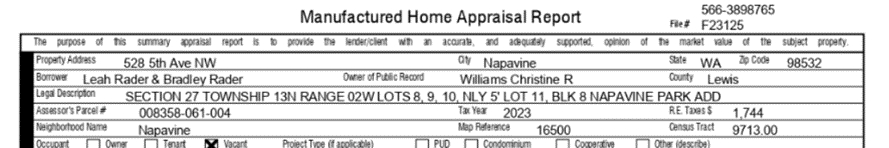 “Manufactured Home Appraisal Report” header for Manufactured Homes