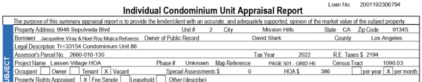 “Individual Condominium Unit Appraisal Report” header for Condominiums