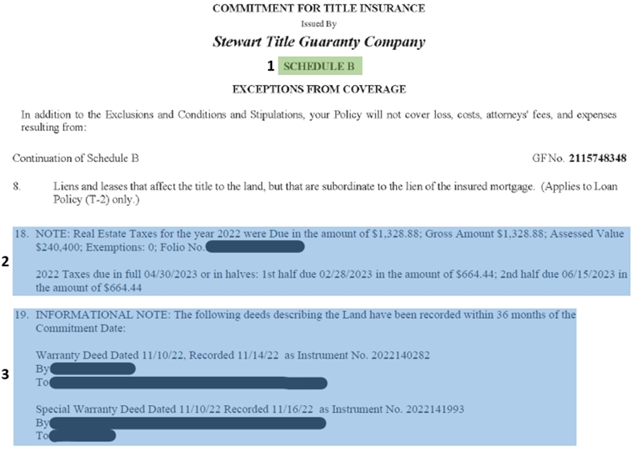 Document title: Title Insurance Commitment, Preliminary Title Report, etc.