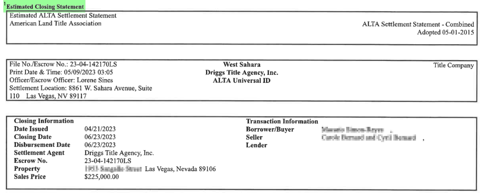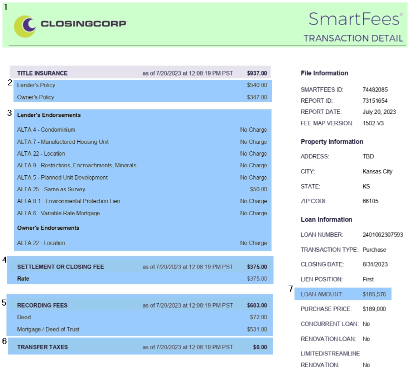 The estimated settlement fees are compiled from two documents: the Closing Corp. SmartFees printout and the estimated settlement/closing statement from the escrow/title company. While the SmartFees printout will appear in the same format each time, the estimated settlement statement from escrow/title will look different as each company uses different software. The draft includes the costs and credits associated with buying or refinancing a home and shows a borrower their estimated total costs.