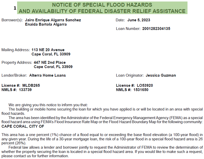 Document title: Notice of Special Flood Hazards and Availability of Federal Disaster Relief Assistance