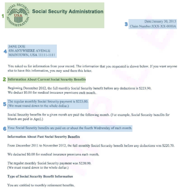 Social Security benefits verbiage