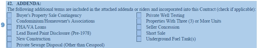 All items checked in the addenda section must be provided alongside the purchase contract.