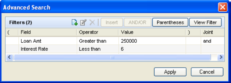 Click the Clear button to redisplay the original list of loans.