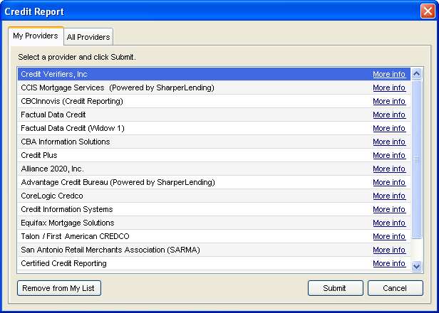 On the My Providers tab, click a service provider, and then click Submit.
