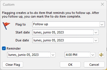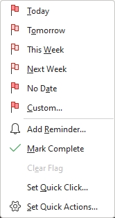 When you click Follow Up, a menu will appear with several options, allowing you to set a follow up on the same day or following days. You can also add a reminder, so Outlook notifies you whenever you need it to.