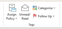 The Tags group in your Home ribbon has options for retention policy, categories/labels, and flags.