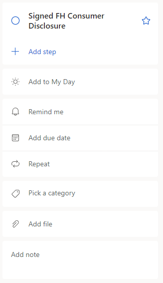 When you create a task, you can add steps, add it to the My Day section, set a reminder, add due date, assign it a category, add a file to the task, or type down notes.