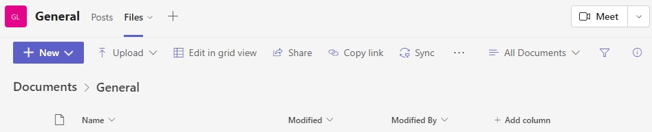 To the top right of the screen when you’re in a team channel, you can also click the Meet button to quickly create and start a meeting with all team members.